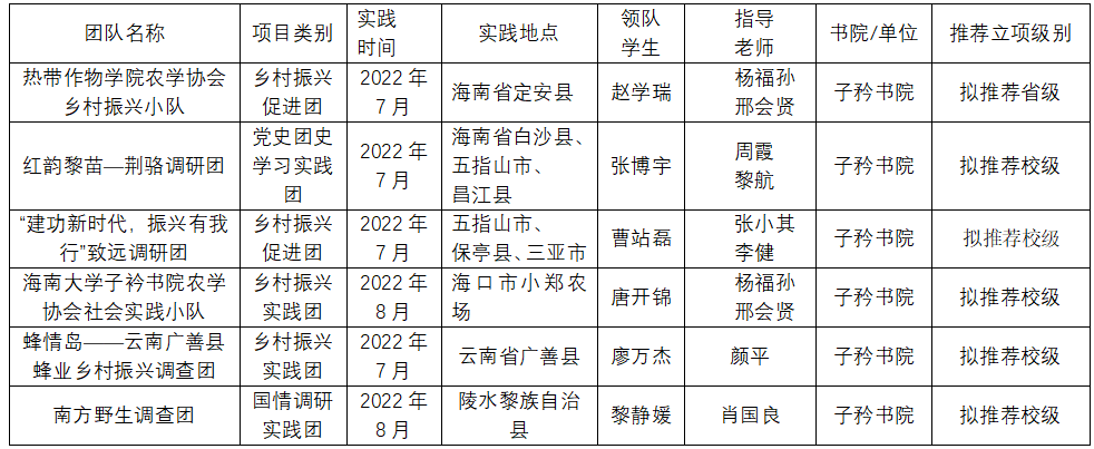 2022年海南省大中专学生志愿者暑期文化科技卫生“三下乡”社会实践活动优秀团队:“建功新时代,振兴有我行”致远调研团
