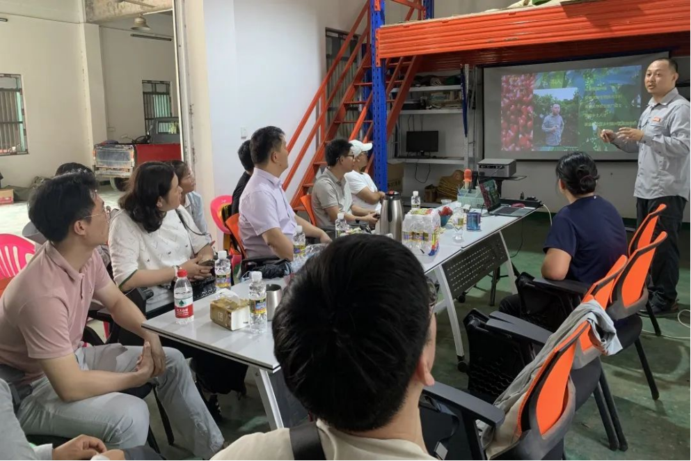 琼海莲雾科技中心负责人张昌龙详细介绍了基地莲雾种植管理情况、市场前景以及进一步发展规划等。张昌龙表示琼海地区具备适宜黑金刚莲雾种植的气候条件,是块得天独厚的宝地,企业计划引导当地群众扩大种植规模,并提供技术跟踪服务,形成莲雾种植产业链。