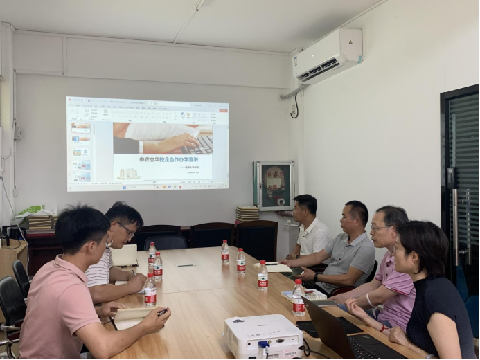 2023年5月31日下午,402cc永利集团同中农立华生物科技股份有限公司开展校企合作洽谈会,出席本次洽谈会的有书院党委书记李海朋、中农立华生物科技股份有限公司作物健康事业部总经理刘顺才、立华学院常务副院长李玮、华南大区经理石根辉、海南省经理陈垂雄、辅导员李健和谢淑婷。