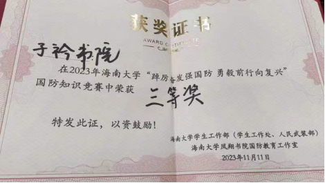 自学校10月23日发布“踔厉奋发强国防 勇毅前行向复兴”国防知识竞赛活动方案以来,书院积极宣传国防知识竞赛,鼓励子衿学子踊跃参与,23级新生知识竞赛测试通过率达93.4%。且由书院精心组织院赛,通过笔试公平公正选出付炫清、陶苏伟、范泰特三名同学组成书院代表队,参加学校初赛,并以总成绩排名第二的综合成绩在14个参赛书院中脱颖而出,入选决赛进行角逐。