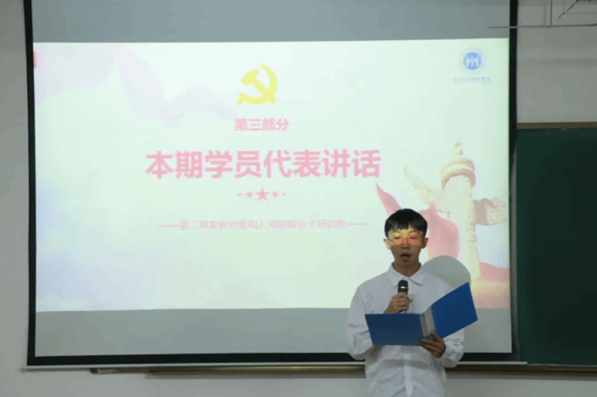随后学员代表蔡世尧同学进行发言,他的发言不仅展现了对党的深厚感情和坚定信念,还为学员们提供了宝贵的学习经验和思考方向。新时代中国青年要继续发扬五四精神,以实现中华民族伟大复兴为己任,不辜负党的期望、人民期待、民族重托,不辜负我们这个伟大时代。