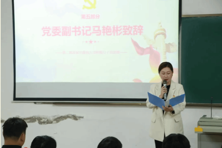 会上,马艳彬副书记致辞,对培训班学员提出三点希望:一是希望学员们深刻领会举办本次培训的意义,通过培训来增强学员们对党的基本理论、路线、纲领以及党的方针、政策等方面的认识和理解,提高党员队伍的思想政治素质。二是希望学员们端正入党动机争取早日入党,在思想、工作和生活上自觉接受党组织的培养、教育和考察,不断强化党性修养,提高自身素质,早日达到党员标准。三是希望党员争先创优充分发挥先锋模范作用,做到一个党员就是一面旗帜。
