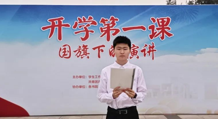 随后,由毕文鑫同学于国旗下进行了题为《青春心永向党》的演讲。正所谓“欲知大道,必先为史”,他从党史出发,举例了百年党史中重大的事件,强调了中国共产党的伟大,同时引用习近平总书记“当代中国青年生逢其时,施展才干的舞台无比广阔,实现梦想的前景无比光明”的讲话,提出当代大学生应具备敢于担当的精神,肩负新时代使命。在党和人民需要的时候,主动站出来,做出一名青年大学生应有的贡献。