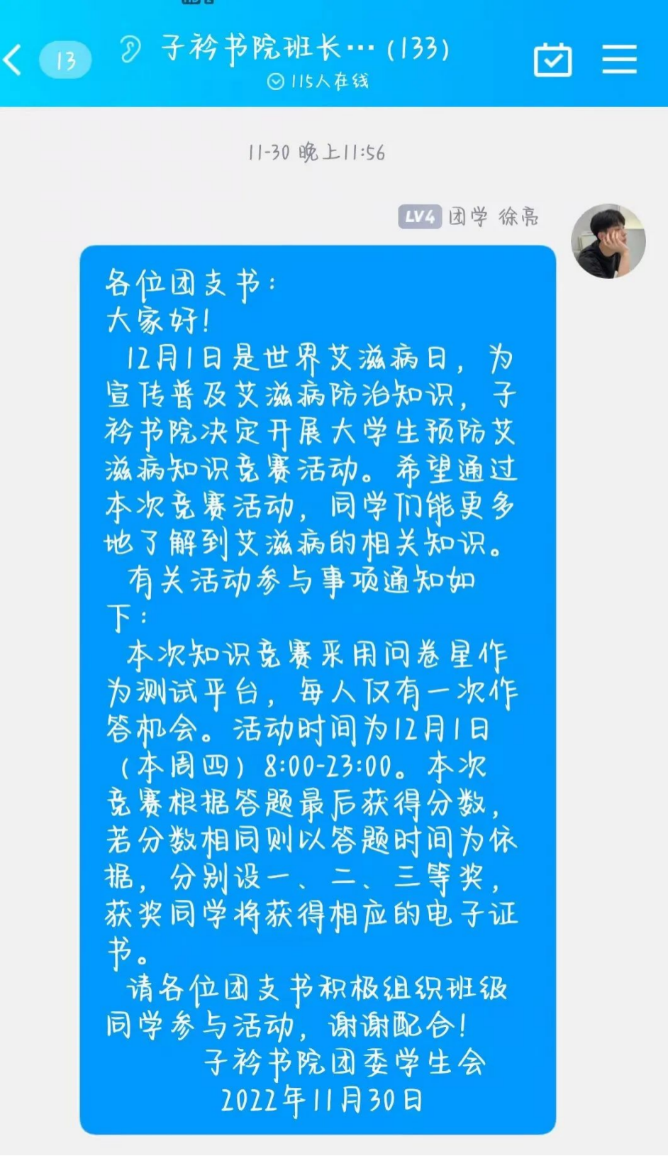 第三十五个世界艾滋病日来临之际,全国各地都举办了世界防艾滋病日宣传活动,旨在给大家科普艾滋病的预防、治疗等相关知识,进一步提高防艾滋病防控效果。402cc永利集团紧跟防艾宣传潮流,在12月1日举办了防艾线上答题活动。