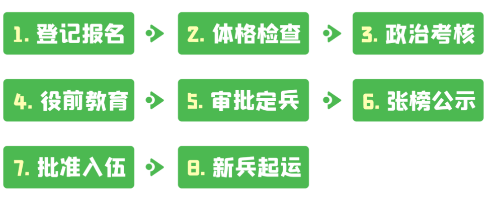 答:网上报名后,还需进行初审初检、体检政考、走访调查、预定新兵、役前教育、张榜公示后,才批准入伍。