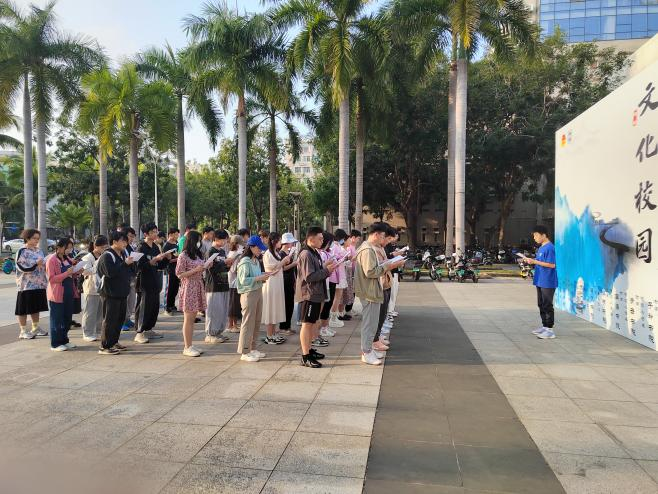 随后同学们纷纷拿出自带书籍伴随夕阳大声朗读,充分彰显了书院学子在新时代的奋斗激情和蓬勃朝气的良好面貌。